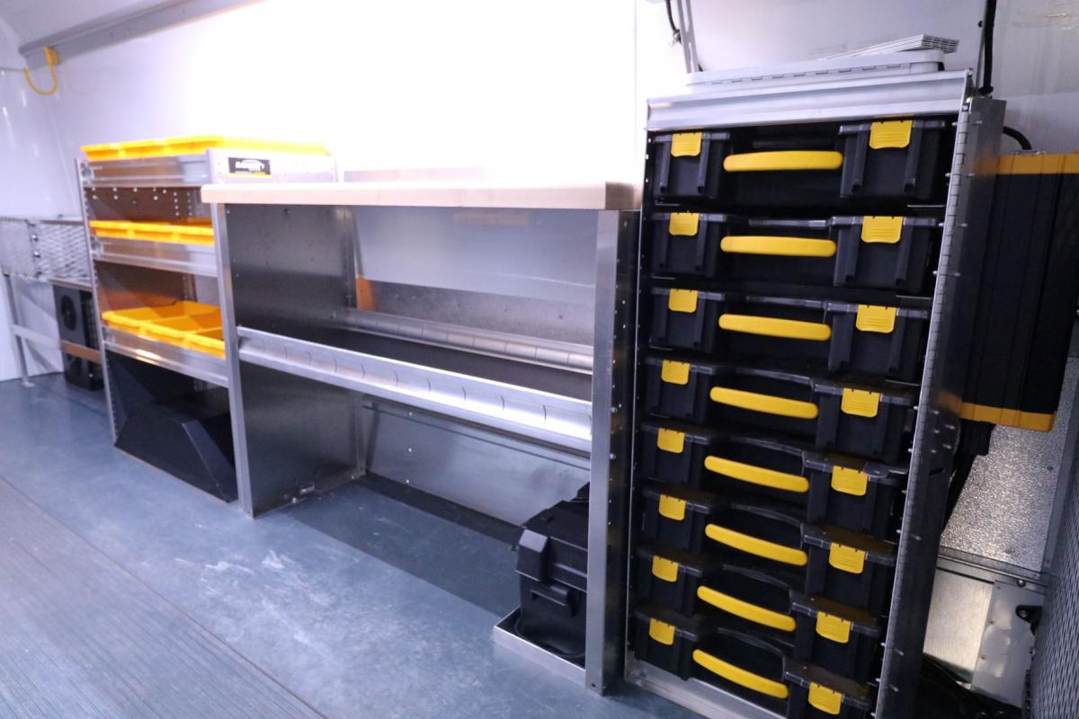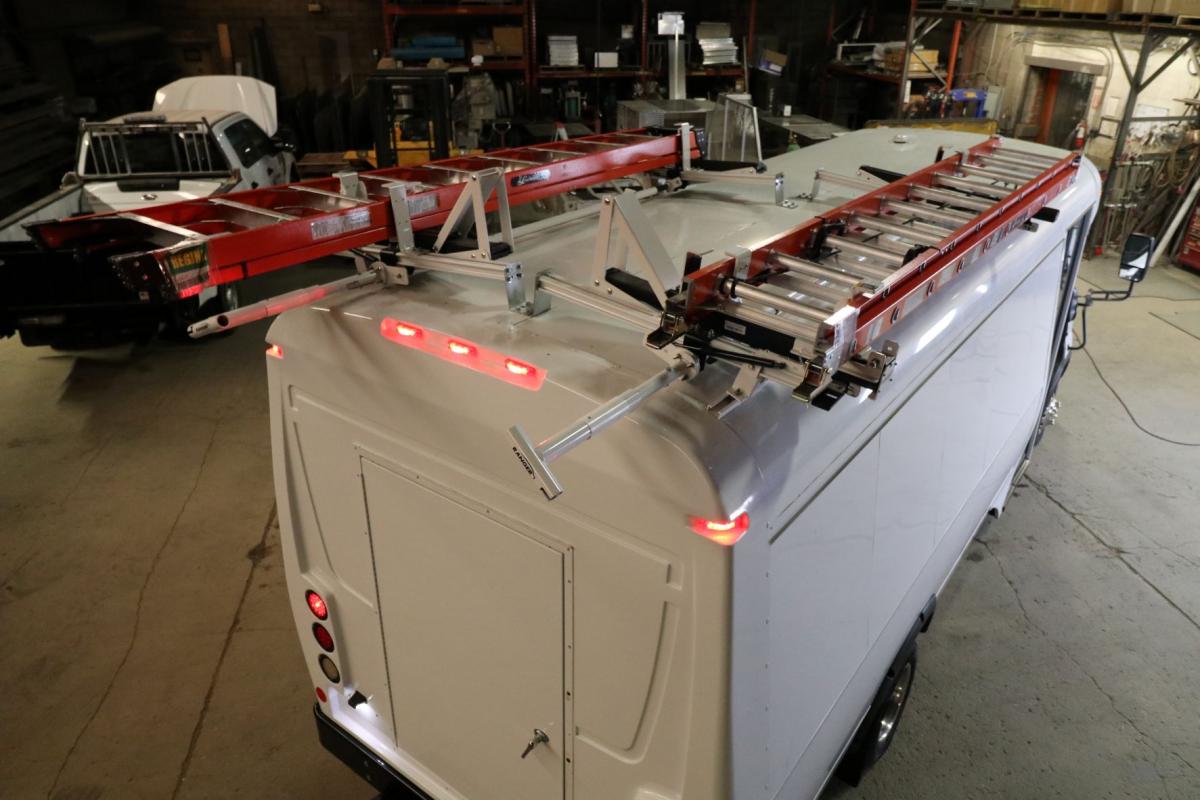 2017 MICRO BIRD/PRO-TEC CUSTOMIZED TRADESMAN VAN Ford Transit Chassis Dual Rear Wheels. 3.7L V6. 6 Speed Transmission. AC/Tilt/Cruise/Stereo 6 way speakers. 41800 BTU Rear Heater 32" walk in passenger door. 34" rear access door c/w step. Customization: PRO-TEC INDUSTRIES 3000W Inverter- c/w 110V outlets. LED lighting throughout work area. RANGER DESIGN: Custom shelving/Work Bench/Organized Storage. RANGER DESIGN: Drop Down Ladder Racks. Interior Work Area: 168"x79"- Accommodates 12' conduit and pipe inside. 74" headroom in work area. Other customizations available to personalize vehicle- Your imagination is the only limit. We can customize a unit such as this for you on a brand new Ford or GM chassis. Some models available with All Wheel Drive.